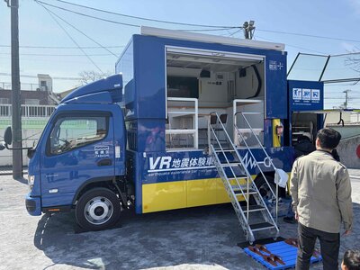 『起震車の揺れと連動したVR映像により、臨場感のある体験ができます。